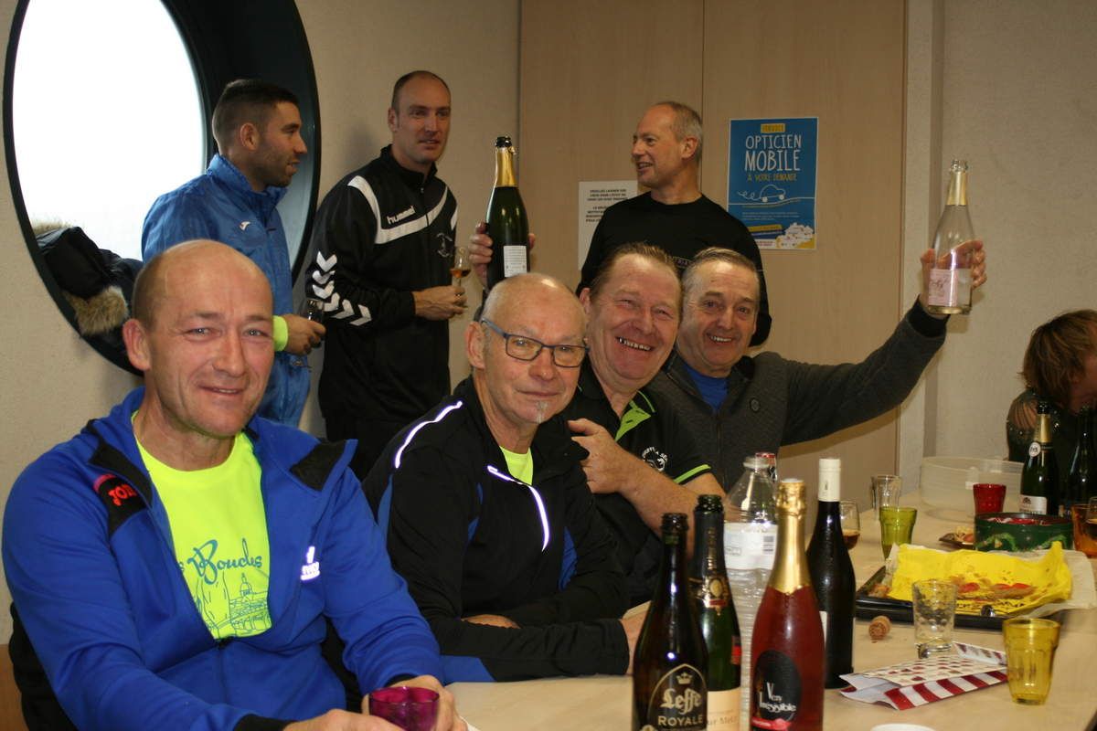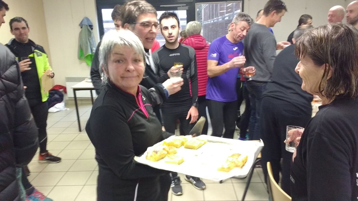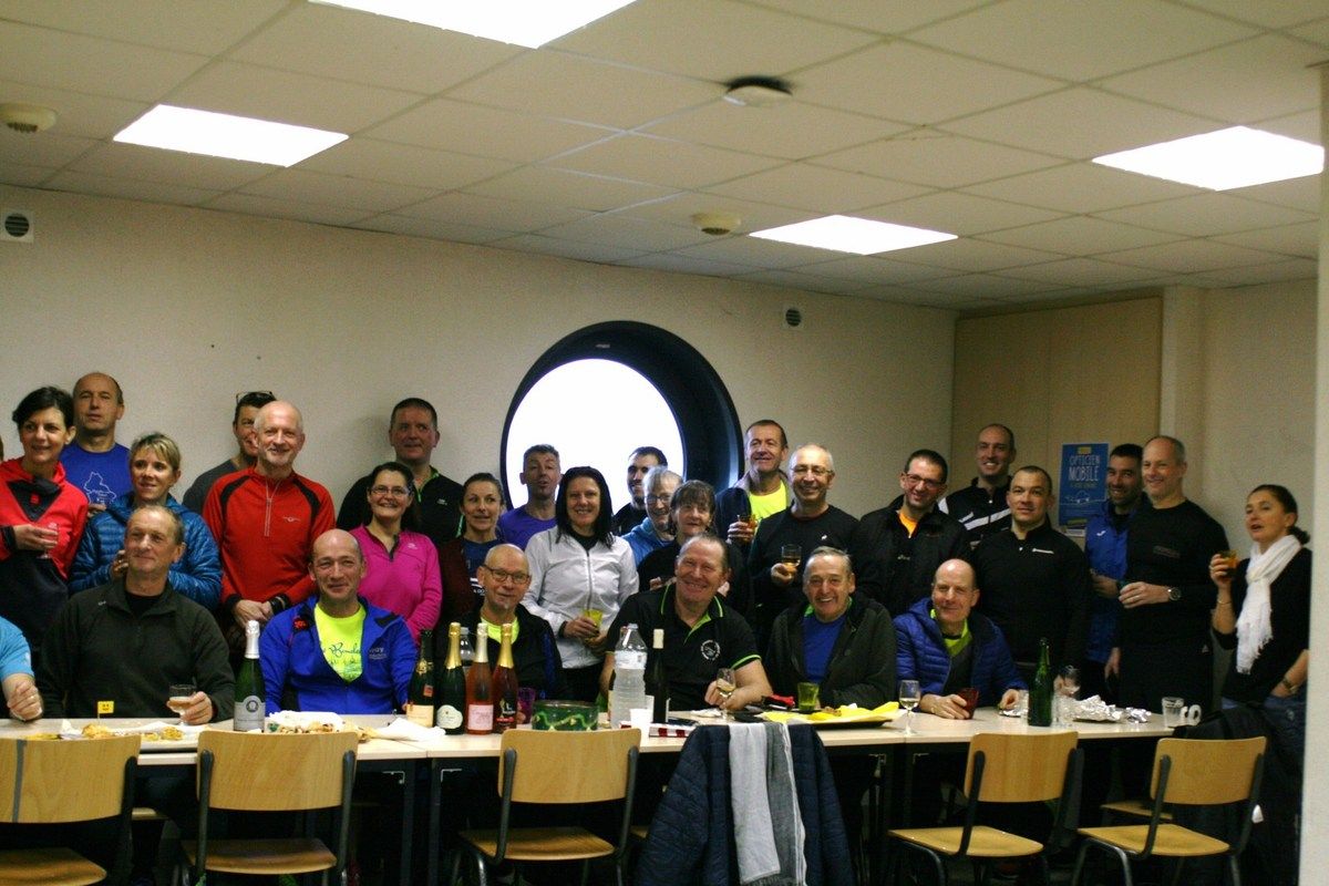 Après nos 10 marathons, nous nous sommes retrouvés à la Halle Sauzay pour déguster les galettes faîtes par plusieurs adhérents (elles étaient toute délicieuses !!) accompagnées de champagne, vin, mousseux,...tout ce qui se boit !